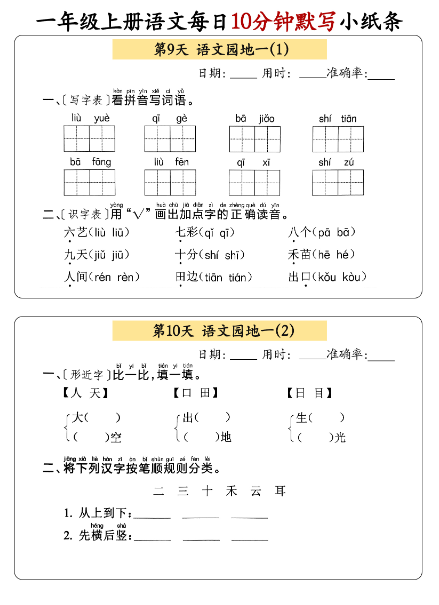 | 24秋 一年级上册语文每日10分钟默写小纸条(完整电子版) | |