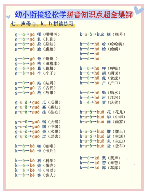 | 资源亮点 | ✅ 覆盖24秋季幼小衔接全版本教材拼音考点 ✅ 200+高清图解卡+组词造句专项训练表 ✅ 声母/韵母/整体认读分类归纳表+易错对比 ✅ 一键下载即得PDF可打印版,家长辅导神器! |