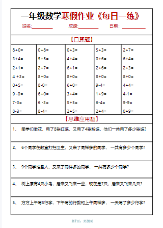 | 一键秒存2025最新一年级数学寒假作业天天练30页PDF高清版!每天10分钟,趣味巩固计算能力,寒假逆袭就靠它!点击快速下载,孩子轻松领先一步! | |