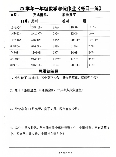 | 【立即一键下载】2025寒假不滑坡!最新一年级数学作业每天练10分钟,开学领先一大步! | |