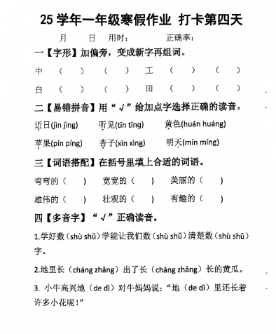 | 2025最新一年级语文寒假作业(完整版PDF可打印) | |