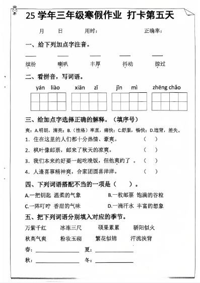 | 一键快速保存,2025最新三年级语文寒假作业全解版!高清下载即刻获取,专为寒假提分打造,题题精炼,知识点全覆盖,让孩子轻松赢在起跑线!点击立即下载,抢先领取福利! | |