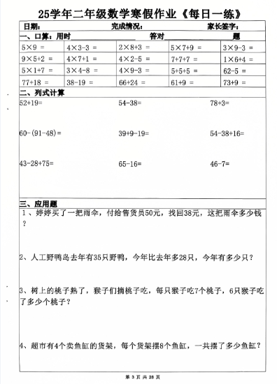 | 2025二年级数学寒假作业 | 人教/北师大版可选 | 每日专项训练+综合检测 | |