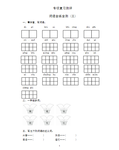 | 资源亮点 | ✅ 部编教材同步生字词全覆盖 ✅ 35页系统专项训练题(拼音+组词+造句+近反义词+听写) ✅ 高清PDF可一键保存本地随时打印 ✅ 适合课堂练习、家庭作业、复习检测用 |