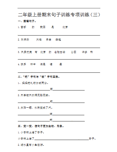 | 2上句子训练专项练习(31页)PDF可一键下载|高清完整版打印即用 | |