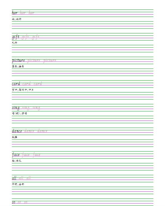 | 适用人群 | 三年级小学生 | 英语初学练字者 家长辅导家庭作业 | 英语教师教学备课 国际学校学生 | 书法爱好者临摹模板 |