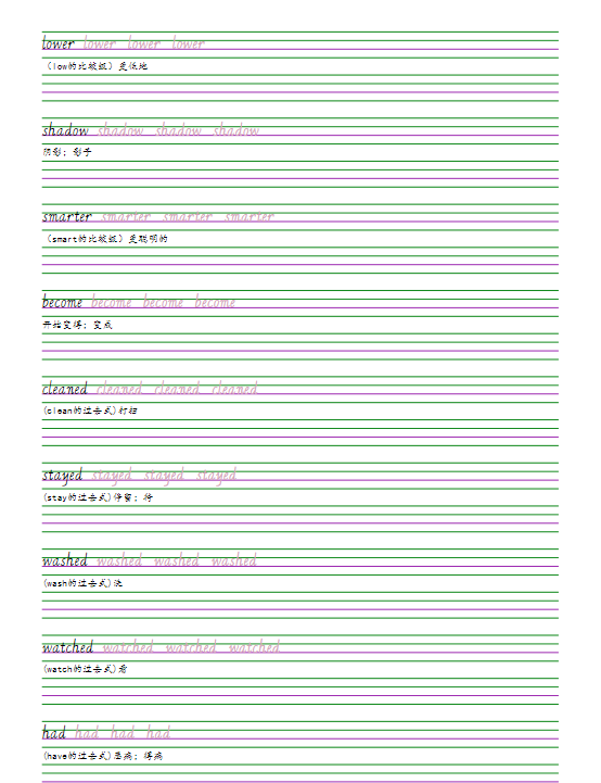 | 【共11页】25春人教PEP版六下册英语字帖 – 手写印刷体同步练字精华 | |