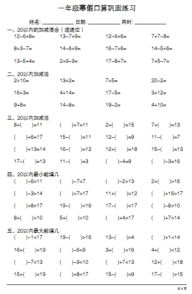 | 25春一年级上册数学寒假口算巩固练习(PDF可打印版) | |