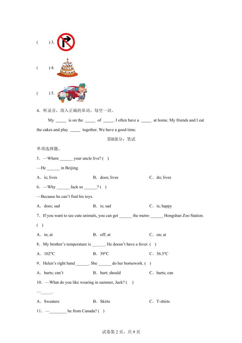 试卷构成 | 包含听力理解、阅读技巧、词汇语法及写作表达板块,题型多样如选择、填空、简答和情景写作等,全面考察学生英语综合素养。 |