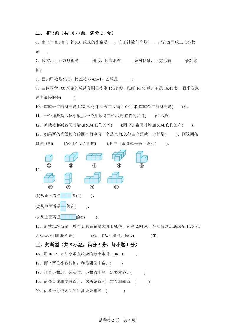 特点 | ① 素养导向:的多类型题目(如生活情境应用题、几何操作探究题)强化“量感”“空间观念”等课标核心素养;② 分层设计:设置基础巩固(占比40%)、能力提升(占比50%)、思维拓展(占比10%)三级任务,满足不同水平学生学习需求;③ 情境化命题:采用“校园活动数据统计”“家庭理财方案设计”等真实生活情境,提升知识迁移能力 |