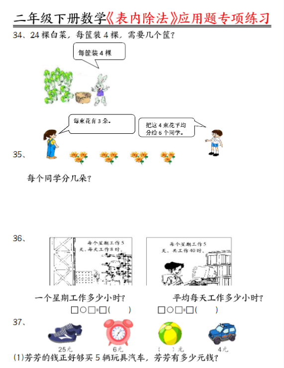 | 【表内除法】应用题专项练习(空白+完整版) 二下数学 | |