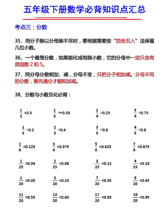 | 🔥一键快速保存,锁定五年级数学下册38个必背考点!图解+公式+例题全收录,考试冲刺高效提分,错过等一年!立即点击保存高分秘籍! | |